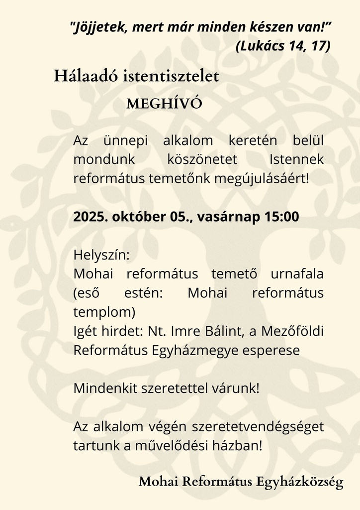Ahogy ezt korábban is tettük, idén is hívjuk és várjuk szeretettel a házastársakat is, és minden kedves gyülekezeti tagot is.