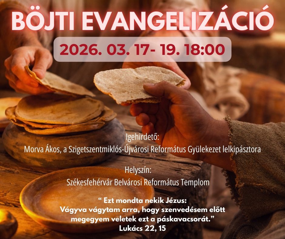 Sok szeretettel hív minden érdeklődőt Székesfehérvár Budai Úti Református Egyházközség a tavaszi evangelizációra a következő napokon: