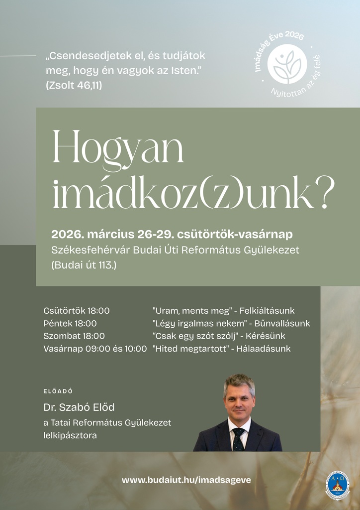 Az igét Dr. Szabó Előd, a Tatai Református Gyülekezet lelkipásztora fogja hirdetni mindegyik alkalmon.