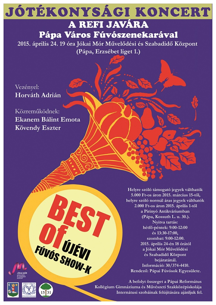 A belépőjegyekből befolyt összeg a Pápai Református Kollégium Gimnáziuma és Művészeti Szakközépiskolája Internátusi szobáinak felújítását szolgálja.