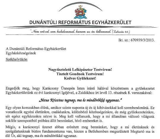 Ünneplő Keresztyén Gyülekezet! Szeretett Testvéreink!