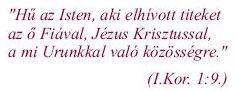 „A szeretet türelmes, jóságos; a szeretet nem irigykedik, a szeretet nem kérkedik, nem fuvalkodik fel. Nem viselkedik bántóan, nem keresi a maga hasznát, nem gerjed haragra, nem rója fel a rosszat. Nem örül a hamisságnak, de együtt örül az igazsággal. Mindent elfedez, mindent hisz, mindent remél, mindent eltűr. A szeretet soha el nem múlik.”
