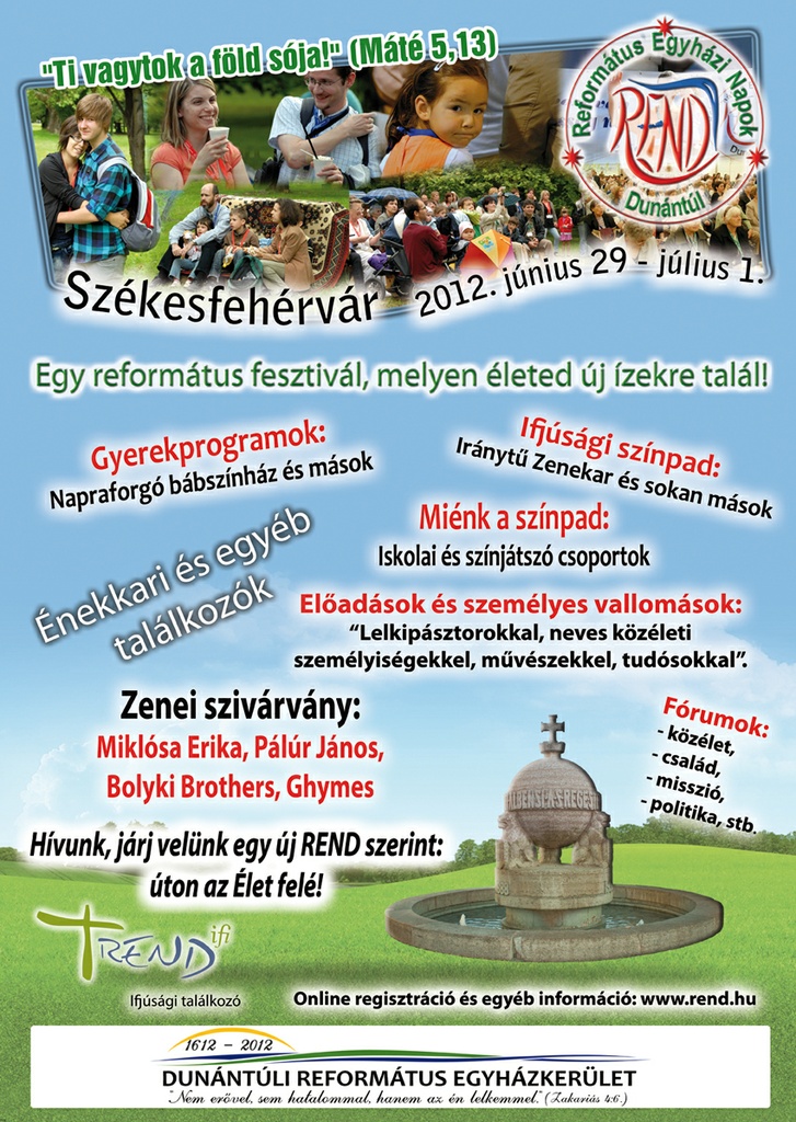 Szeretettel várjuk a dunántúli református gyülekezetek tagjait és minden érdeklődőt a REND fesztiválra!