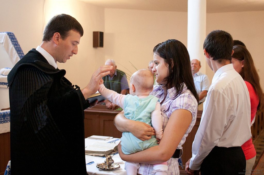 Gyülekezetünkben az utóbbi időben megjött a kedv a gyermekvállalásra (nem ritka a három gyermekes család), így a keresztelők száma is meggyarapodott. Azért is szeretem ezeket az alkalmakat, mert akkor az én rosszcsont áhítatot szétfeszítő gyermekeim is csöndben, kíváncsian figyelik az eseményeket, szusszanásnyi időt hagyva nekem arra, hogy fegyelmezően összehúzott szemöldököm kisimíthassam.
