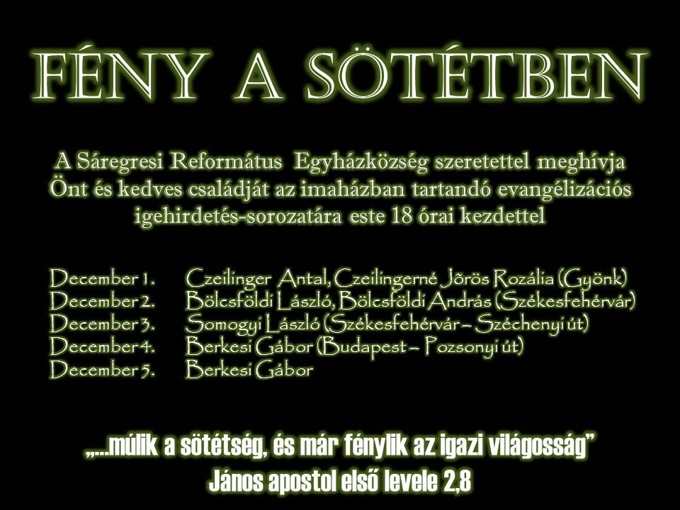 Ha úgy érzed magadra maradtál, céltalan vagy, nem bírod a nehéz terheket, gyere el te is!