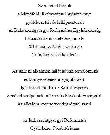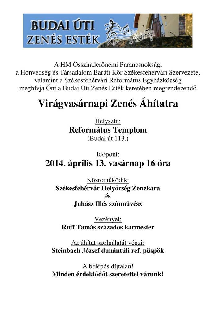 Húsvéti istentiszteleti rend Széchenyi úti templom: