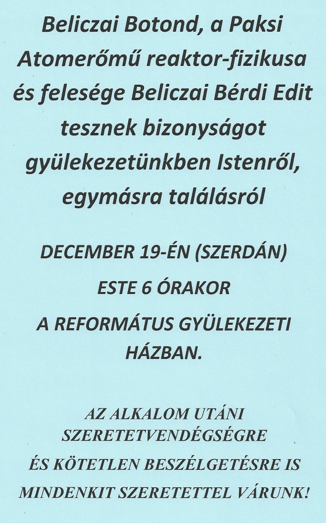 Szeretettel várunk minden érdeklődőt a bodajki Református Templomban!