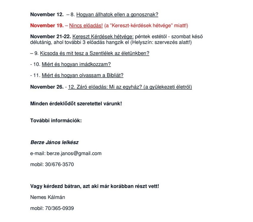Keresztkérdések - Előadássorozatot indítunk szerda esténként a Budai úti gyülekezetben.