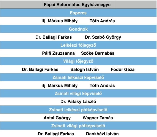 Honlapunkon közöljük az egyházkerületi és egyházmegyei választási bizottságok által megküldött tájékoztatás alapján összesített listát.