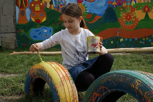 Az enyingi református iskolában nem először segítettek önkéntesen tanárok, szülők, diákok: 2009-ben az iskola parkosításán már több mint százhúszan munkálkodtak. Idén a tanév vége előtt készült el a mese- és játszóudvar társadalmi munkával, amely legalább félmillió forint megtakarítást jelentett az intézmény költségvetésének. Ennek keretében játékokat faragtak, festettek, majd helyeztek el az udvaron, kosárlabdapályát betonoztak, valamint a diákok közösen festettek ki egy falat különböző mesebeli tájakkal, fákkal, virágokkal: ez lett a meseudvar.