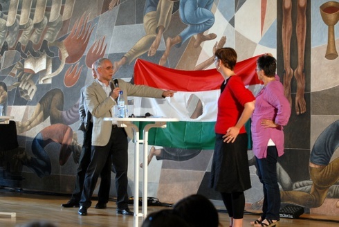 Kezdek belejönni a térképhasználatba. Délelőtt elmentem a magyar-német pódiumbeszélgetésre. A két ország rendszerváltásáról és az azóta eltelt időszakról volt szó. Balog Zoltán államtitkár egy lyukas zászlót hozott magával, számára ez jelképezi a szabadságot. Elmondta, ha ma tüntetne valamiért, akkor a kisebbségek szabad együttéléséért menne ki az utcára.