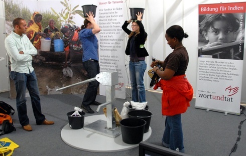 Ma már tudtam aludni, hozzászoktam a kemény padlóhoz. Egy iskolában szálltunk meg. A villamoson egyre több zöld sálas utast látni - mind a Kirchentagra jöttek. Igaz, az idei nem ökumenikus Kirchentag, mégis vannak itt más felekezetűek is. Az afrikaiak és az indiaiak egy része népviseletet öltött. Ma nem maradtam a belvárosban, kíváncsi voltam a lehetőségek piacára. A Kirchentagon minden évben rendeznek expót, ahol bemutatkoznak az egyes missziós területek, iskolák, kiadók. Beszélgettem itt egy egyiptomi, kopt ortodox művésszel, aki azt kérte, internetre ne kerüljön fel a vele készített interjú, mert a lakóhelyén üldözik a keresztyéneket.