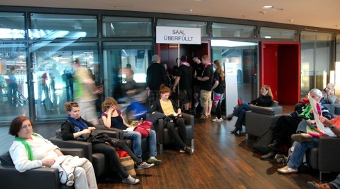 Egy adaptert tartott a kezében Fabiny Tamás, amikor az egyházát kellett bemutatnia. Mozgatható, pici, de fontos eszköz, önmagában azonban semmit sem ér, mondta. Mikor délután a kongresszusi központhoz érkeztem, a magas lépcsősor teli volt emberekkel, a nagy előadóterem bejáratainál már jóval az előadás megkezdése előtt feltartották a cserkészek az ÜBERFÜLLT, azaz MEGTELT táblát. Margot Kässmann, a rendkívül népszerű, egykori püspök szexualitásról szóló előadását még az udvaron is összepréselődve hallgatták az emberek a hangszórókból.