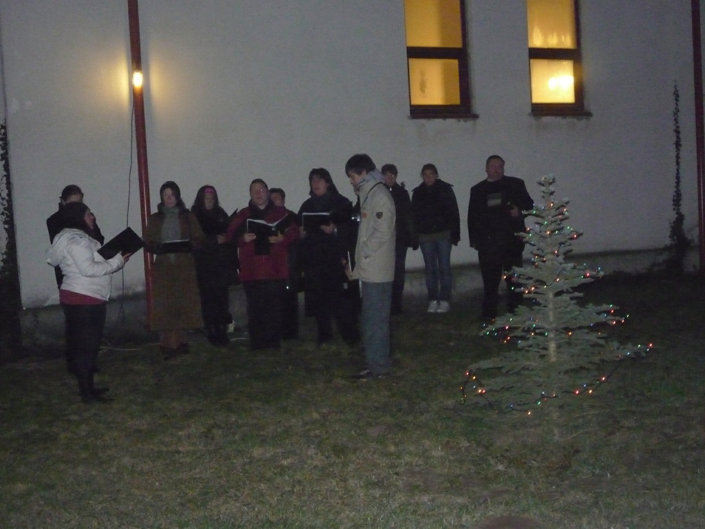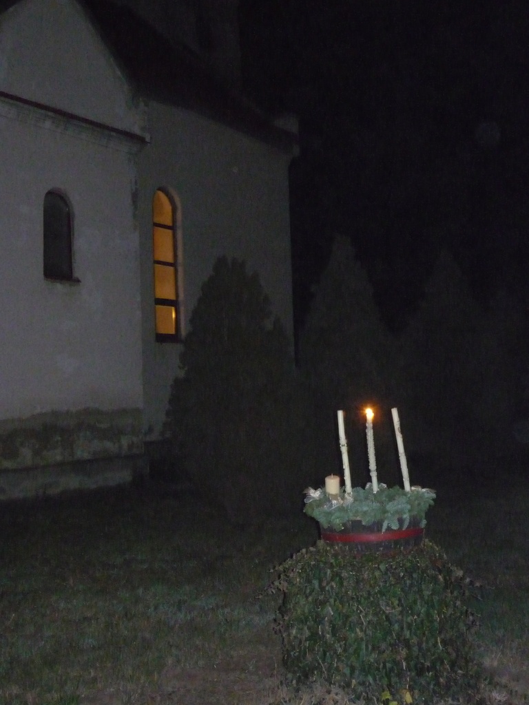 A nap végén Adventra készülve a templomkertben Esperes úr igeolvasása és a Szivárvány kamarakórus előadása után meggyújtottuk az adventi koszorú első gyertyáját.