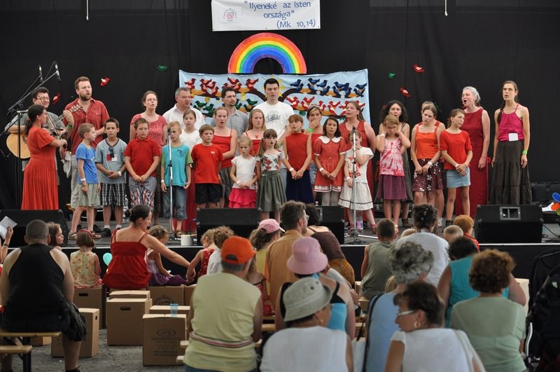 A kórus egy igazi családi énekkar és zenekar, több család tagjai énekelnek együtt. Megható volt látni, hogy az apukák együtt énekelnek gyerekeikkel. A köszöntésüket az elején énekszóval adták elő. A többi dal is teljesen egyedi volt, mert Draskóczi Lídia nemcsak a kórus vezetője és hegedűse, de ő a szerzője is ezeknek a különleges daloknak. Különböző hangszerekkel kísérték az énekeket, amelyeknek a keletkezéséhez Lídia mindig fűzött egy kis magyarázatot. A vegyes kórus előadása több nézőt érdemelt volna, de túl nagy volt a meleg. A csengő gyermekhangok még sokáig visszhangoztak a füleinkben. Bájos és egyedi volt az ő műsoruk, amellyel Istent dicsőítették.
