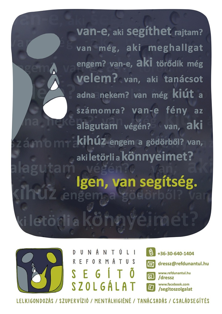 Ezért ebben a pár sorban szeretném megerősíteni és felhívni a figyelmet arra, hogy ez a Szolgálat - a Dunántúli Református Egyházkerület vezetésének támogatását bírva -, a küldetésének megfelelően már kész fogadni a hozzánk fordulókat. Kialakult a segítő munkatársak köre és lehetőség szerint igyekszünk úgy segíteni, hogy az elérhető közelségben legyen a lelki- mentális, és tanácsot váró, szükséghelyzetben lévő emberekhez.