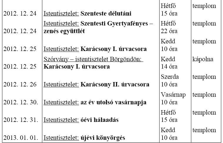 December 23-26. (vasárnap - szerda) 9:00 -12:00